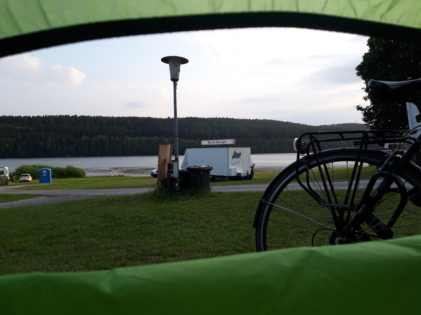 Die Nacht an meinem Zeltplatz gestern verlief abgesehen von einigen tierischen Lauten (Rehe vermutlich) gut, wenn der Schlaf auch Verbesserungspotential bietet.