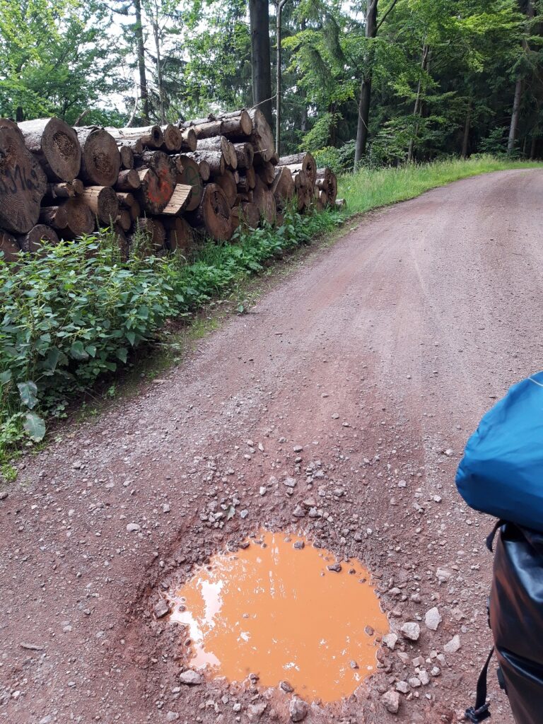 Nachtrag zu gestern Abend: Der Regen dauerte ca. 1h. Zu meiner geringen Begeisterung stellte ich fest, dass mein 7€ Zelt undicht ist. Aber den Wassereinbruch konnte ich noch bewältigen und als dies soweit war, war auch die Mukke um mich rum leise geworden. Anscheinend regnete es nicht nur bei mir. Hoffe ich komme in den nächsten Tagen um den Monsun rum, der in Deutschland gerade wütet – sonst muss ich mir was anderes mit dem Zelt überlegen.