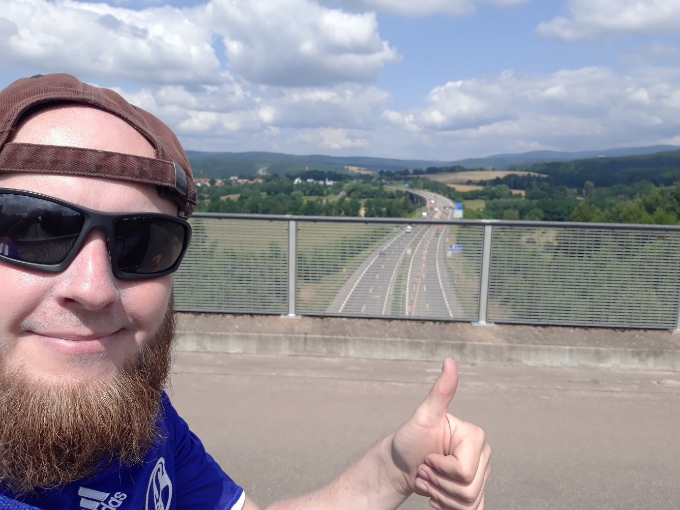 Dann los und nun gings richtig aufwärts im Leben :D. Insgesamt 1,5h im Wald bergauf gefahren. Dann kam eine Brücke über eine Autobahn – ich schnupperte das erste mal etwas Höhenluft (s. Pic). Danach gings weiterhin bergauf und ich realisierte, dass ich mich im Thüringer Wald befand. An Teils recht schmalen Pfaden musste ich aufpassen nicht hunderte Meter abwärts zu segeln (s. Pic).