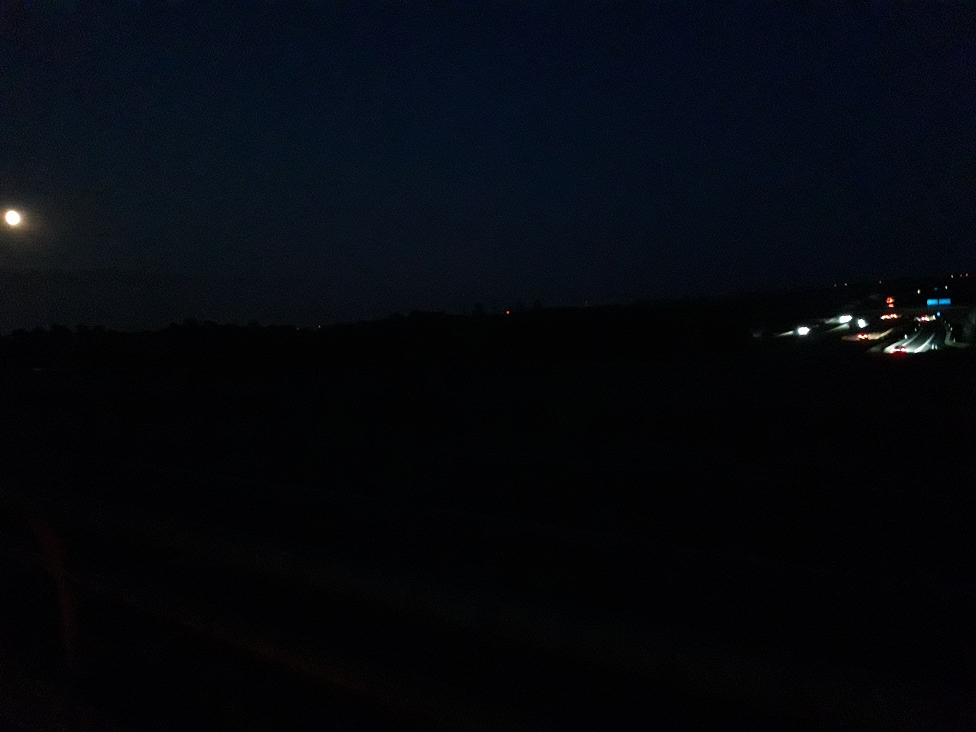 Als ich mich von dem Mädel verabschiedete war es schon nach 22:00 und ich musste nun zurück zu meinem Zeltplatz im Norden (ca. 10km von der Innenstadt). Das letzte Bild schoß ich von einer Autobahnbrücke mit Mond im Hintergrund (s. Pic). Um 22:45 war ich am Campingplatz angekommen und bin somit ca. 10h Rad gefahren, was eine Strecke von knapp 53km entspricht (33 km von Gotha nah Erfurt und 20 km Zeltplatz hin und zurück. Wie ich jetzt genau morgen fahre, werde ich morgen früh auskundschaften, die Bierchen laden zum pennen ein.