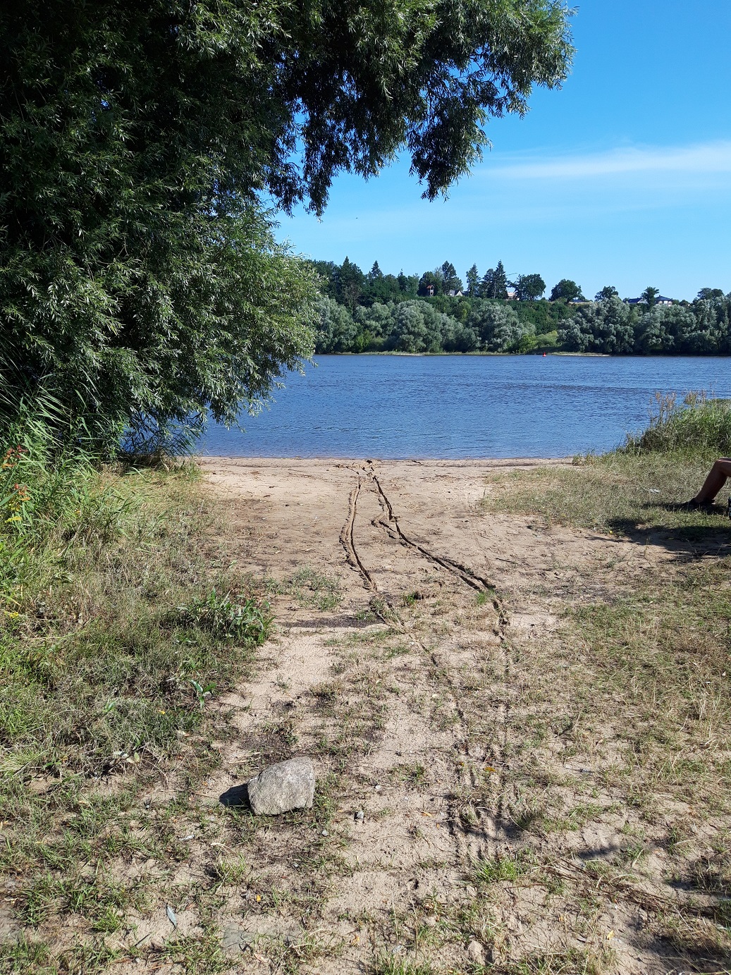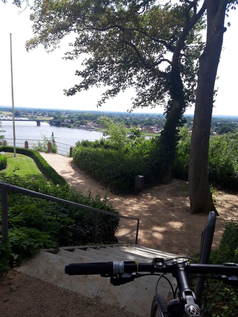 Heut um 09:30 losgefahren, den abgebrochenen Fahrradständer noch eingepackt (zum Glück ja auch nicht lebensnotwendig) und nen km neben dem Campingplatz am Deich gemütlich meine zwei Brötchen gefrühstückt. Dann zum nächsten Ziel weiter nach Boizenburg. Laut Karte liegt das nur ca. 5km nördlich und es soll eine Verbindung über die Elbe geben. Nachdem ich der Strecke für ca. 30min gefolgt bin, stellte sich raus, dass diese Route direkt in der Elbe endete (s. Pic). Ein genauerer Blick auf die Karte sagte, das hier eine Fährverbindung sein solle, was aber dem Anschein nach höchstens vor einer Ewigkeit der Fall sein könnte.
