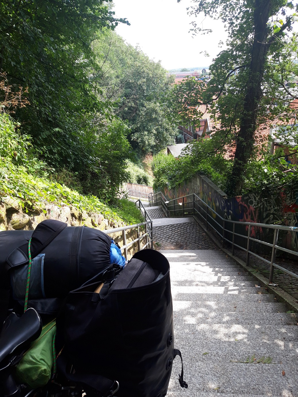 Dann weiter zum Hafen, wo ich dann auch die letzten Fotos machte, ein wenig realisierte, dass ich wahrscheinlich zwischen 550 und 600 km Fahrrad gefahren war und nun tatsächlich am Ziel angekommen bin. Die Möhre hat erstaunlicherweise durchgehalten!! Es war nun 21:30, womit ich 12h unterwegs war, wovon vermutlich 10,5h auf dem Rad. Es waren am Ende an diesem Tag ca. 100 km! Am Ende spürte ich auch jeden Millimeter :D. Aber wie erwähnt sogar ein Tag früher als geplant nach Haus gekommen – Goil!