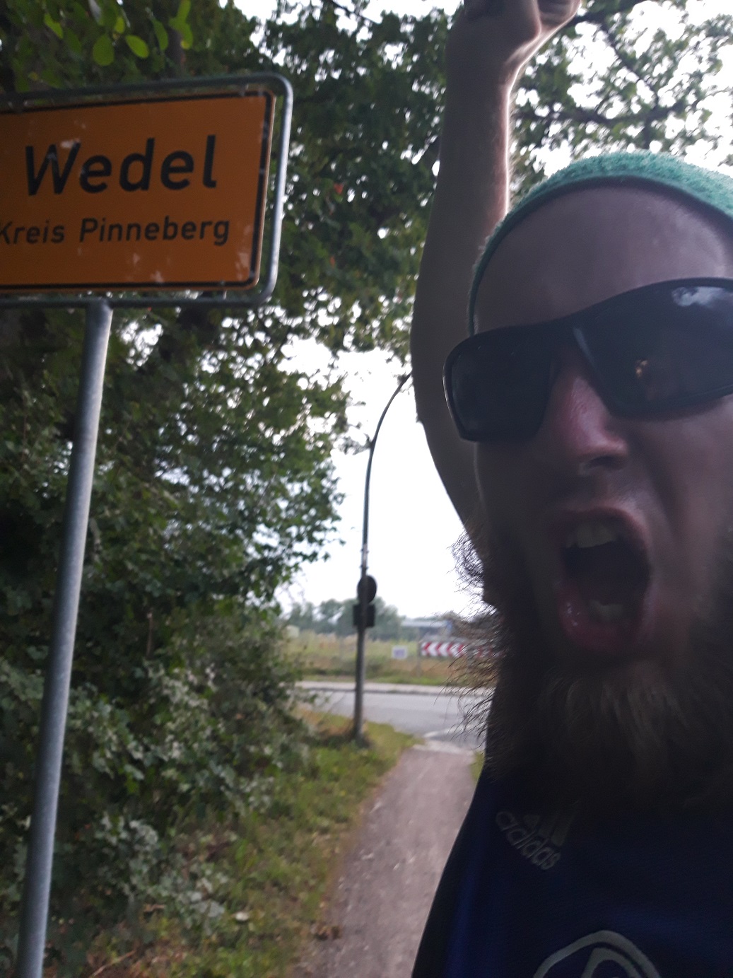 Da das Wetter aktuell (nur am Nachmittag gabs immer mal wieder kurzen Niesel) bombe war, ich grad kein Bargeld mehr hatte und das Ziel Wedel mit seinen 46 km zwar weit weg, aber dennoch nicht unerreichbar schienen, entschied ich mich direkt zu fahren. So wäre ich auch einen Tag früher als geplant da, was auch nicht so schlecht ist. Außerdem kannte ich im Westen von Hamburg gefühlt jeden Grashalm. Also: ENDSPURT!